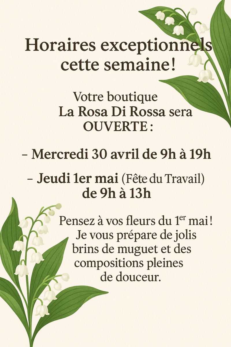 🍀🪴 Votre fleuriste sera ouvert mercredi 1 MAI de 8h00 jusqu'à 13h 🍀🪴