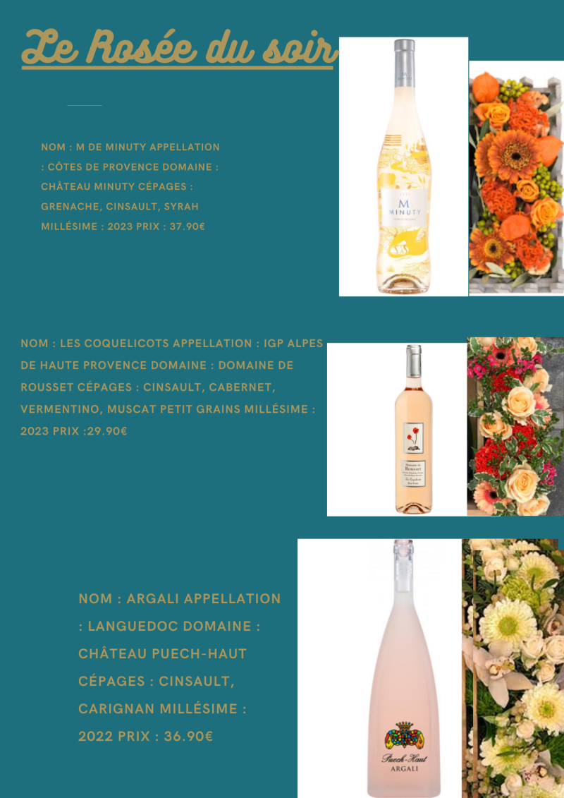 N’oubliez pas la fête des papas DIMANCHE 16 juin 2024, votre Fleuriste à pensé à tout !!!!! Les fleurs pour Madame, le vin pour Monsieur !!! Travailler réalisé dans une caissette en bois naturel de la cave, Molière, comprenant une composition florale, travailler en harmonie avec les couleurs des bouteilles🌸💐votre fleuriste Très bon week-end.