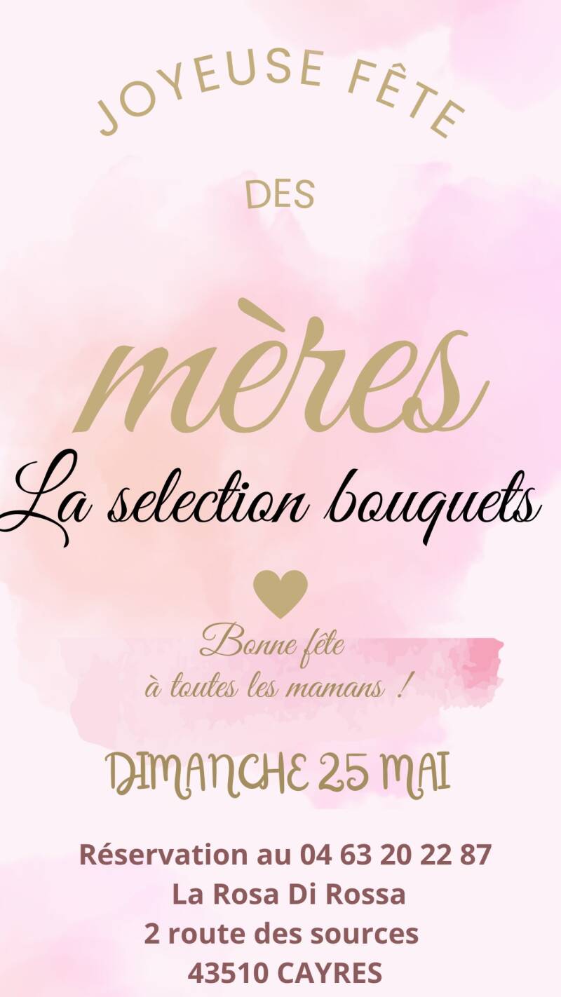 Vous souhaitez marquer le coup pour le plus beau des bouquets de fleurs, spéciale fêtes des mères: les bouquets et compositions piquées seront sur mon site en ligne larosadirossa.fr à partir du 20 mai 2024 , vous pouvez d'ores et déjà commander par téléphone et le récupérer le 25 ou le 26 mai au 04 63 20 22 87 vous pouvez vous facilité le paiement par lien sécurisé avec https://up2pay.voxpay.fr/ que je vous transmettrais . Bonne journée à tous 💖votre fleuriste Stéphanie